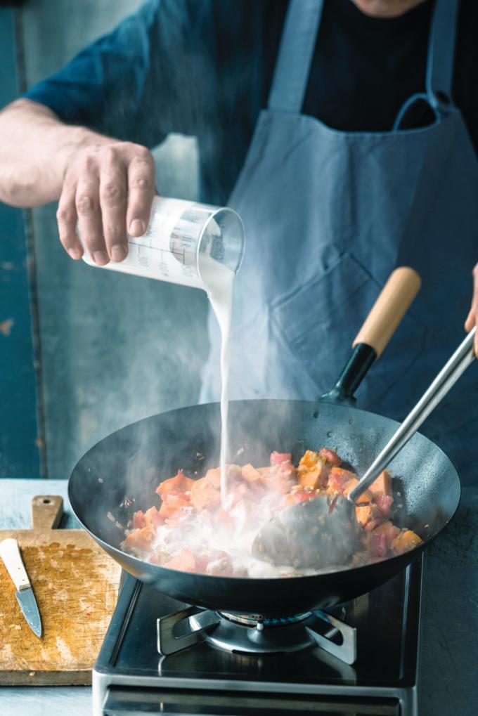 Le secret d’un bon curry – et en réalité de tout plat mijoté – consiste à accorder du temps aux oignons pour qu’ils caramélisent. Ne les faites pas simplement devenir translucides, car la saveur n’a alors pas encore pu se développer pleinement.
