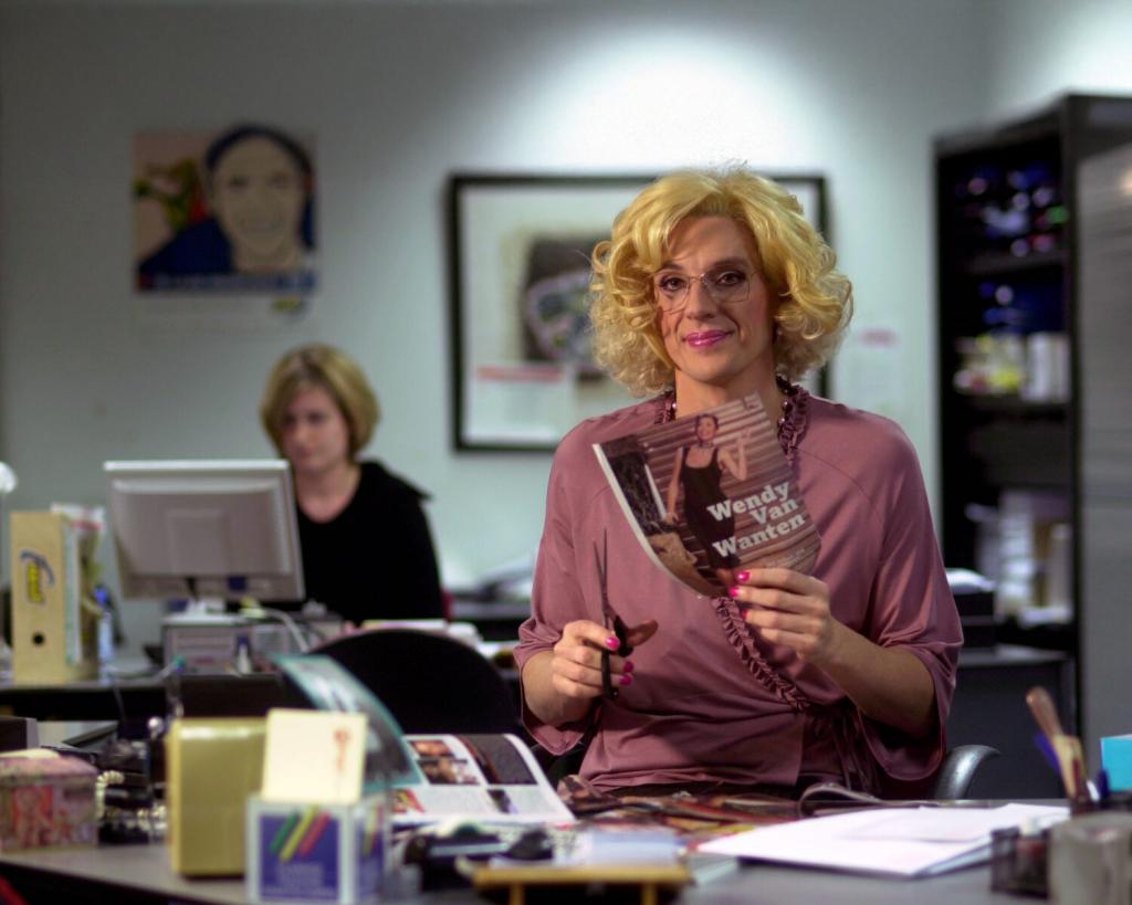 Verkleed als travestiet Debby (Peter Van den Begin) samen met Nancy (Stany Crets)