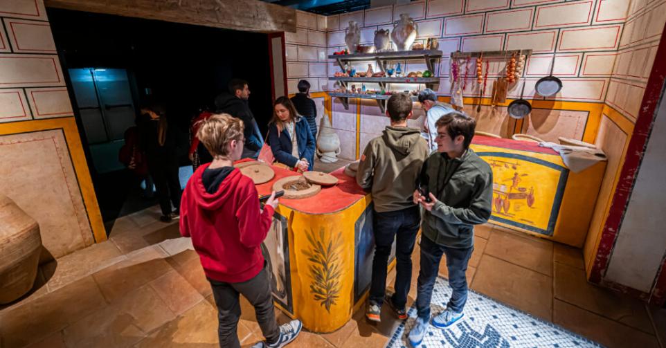 Aan de hand van gereconstrueerde decors volgt de bezoeker het dagelijkse leven van een Pompejaanse familie. Romeinse woningen, ambachtelijke werkplaatsen en plaatsen van ontspanning zijn tot in detail nagebouwd. Daarnaast worden archeologische vondsten getoond en komen de verhalen van inwoners aan bod die bij opgravingen zijn blootgelegd.