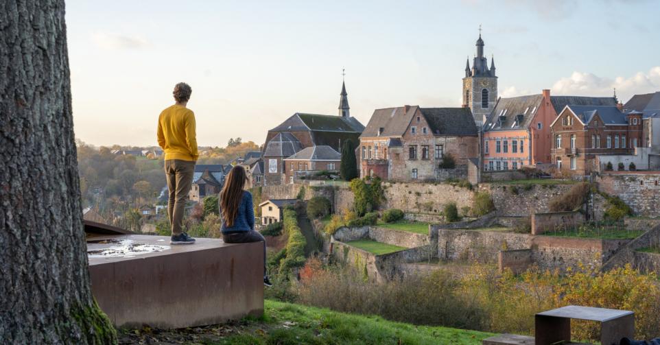 Ontdek het middeleeuws stadje aan de Samber, ten zuiden van Charleroi. Gelegen op een heuvel en met uitzicht op bijna 200 hangende tuinen, straalt het kleine Thuin majestueus in de herfstzon. Verschillende wandelroutes leiden naar spectaculaire uitkijkpunten over de stad. Een van de mooiste, Au fil de la Biesmelle (5,4 km), slingert door het Bois du Grand Bon Dieu, een mysterieus bos dat tegenwoordig wordt verrijkt met hedendaagse kunstwerken.